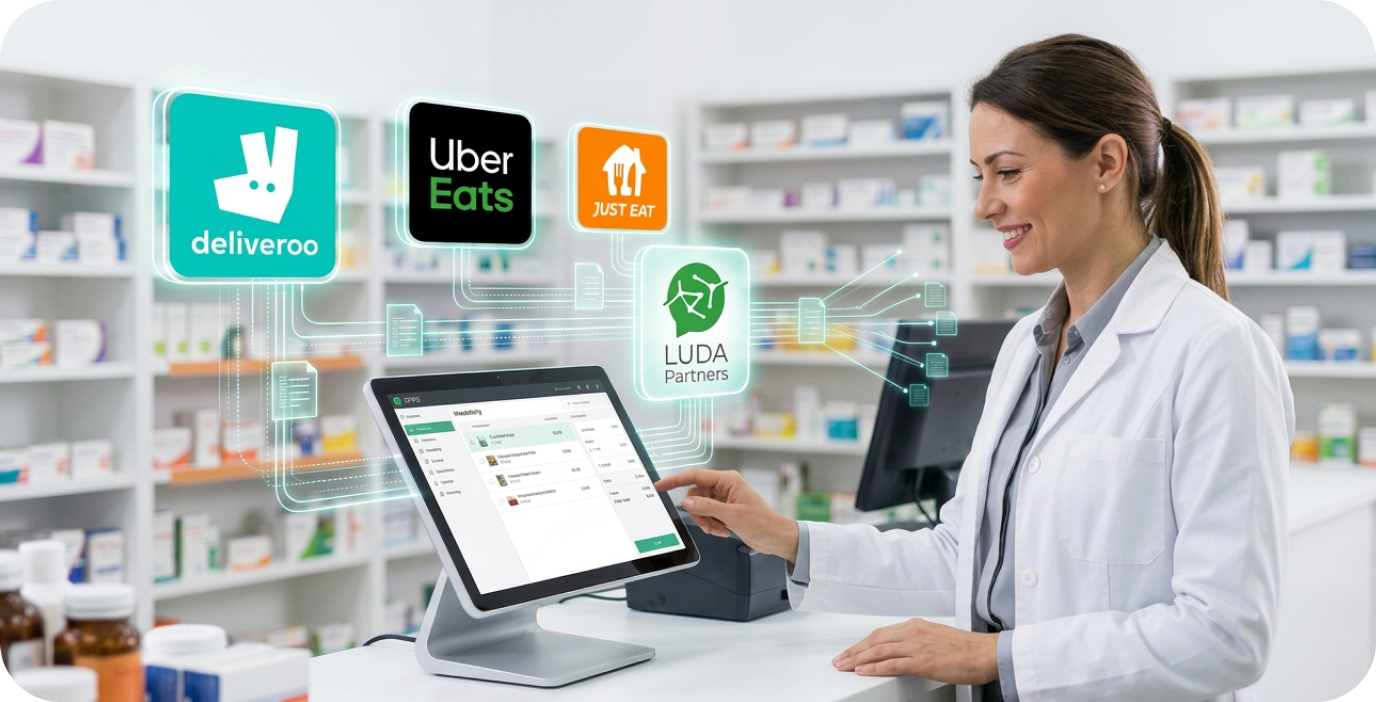 A customer buys vitamins in your pharmacy → Your EPOS updates the quantity → LUDA instantly syncs that change to all delivery apps.